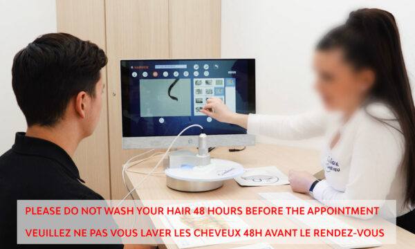 VEUILLEZ NE PAS VOUS LAVER LES CHEVEUX 48H AVANT LE RENDEZ-VOUS Ce diagnostic est réalisé à l’aide de l’appareil HAIRVIEW qui offre, grâce à son microscope et son logiciel capillaire spécifique, une analyse d’une redoutable précision. Seuls les diagnostics capillaires réalisés dans les instituts Clinique du Cheveu ciblent à la fois la fibre capillaire, le cuir chevelu et les bulbes capillaires. La spécificité de cette triple analyse permet d’obtenir un état des lieux complet, tant externe qu’interne, et garantit à nos clients une expertise unique et des réponses claires et détaillées quant à leur situation capillaire globale.
